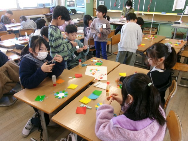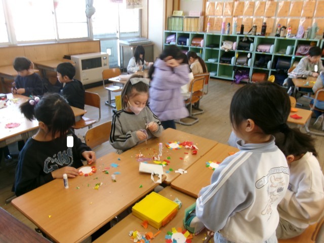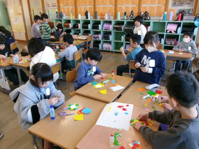 6年生の卒業に向けて、2年生もお祝いの環境づくりをしました。子供たちは、思い思いの花を咲かせて、六年生への感謝の気持ちを表現しました。