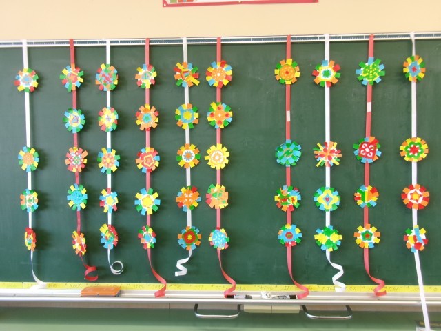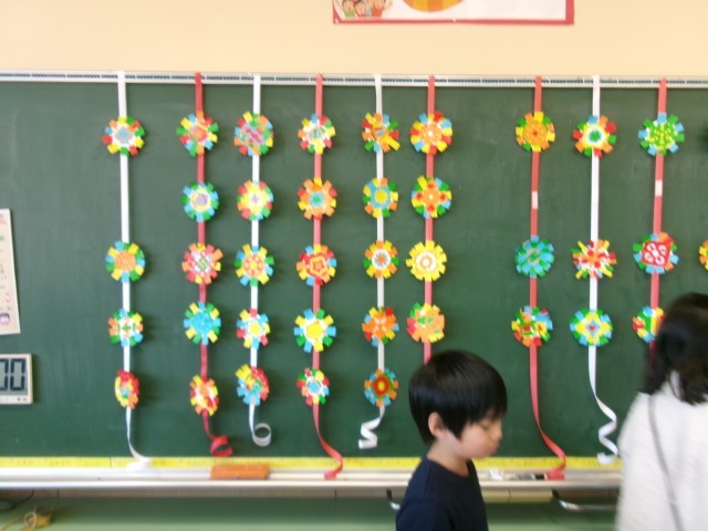 完成した2年生の力作を、生活科室前の掲示板に飾りました。