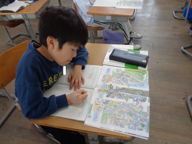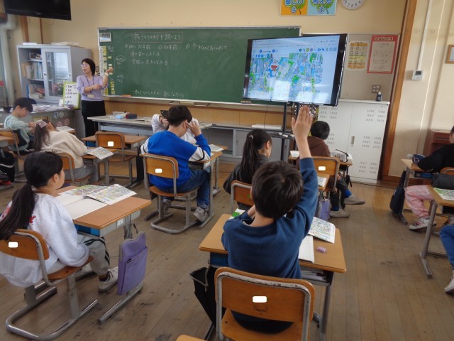 社会科の学習では、市のうつりかわりの様子について話合いました。