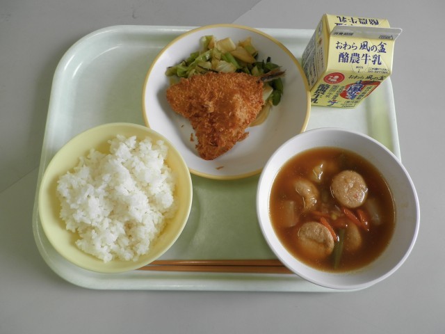 献立名:ごはん 牛乳 あじフライ 昆布和え 関東だき