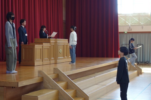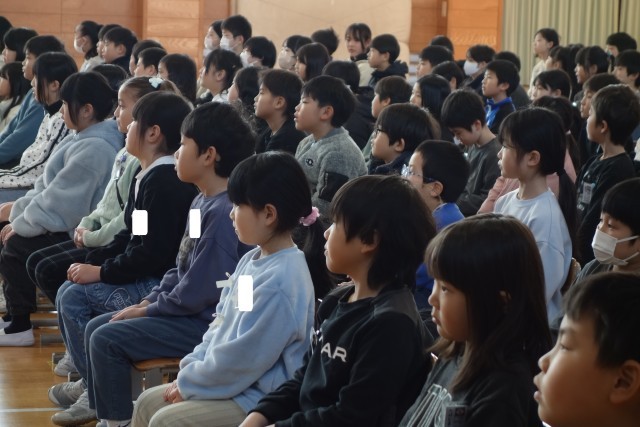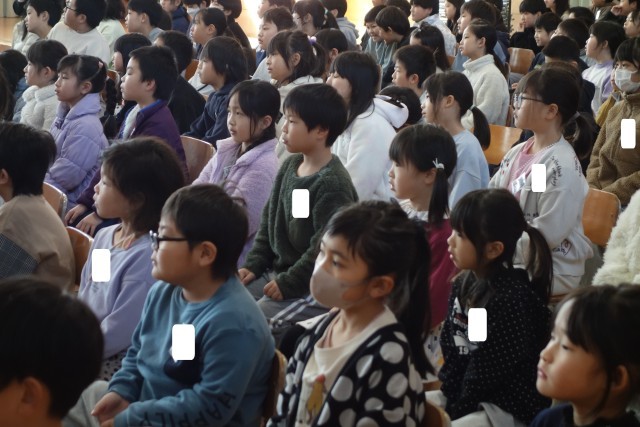6年生の姿を見つめる在校生。