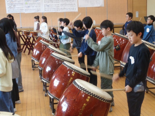 「宮野小学校の伝統を受け継ごう」の学習で、6年生と一緒に学習する最後の日となりました。まずは6年生による「大地」「大祭」の演奏を聴き、次に4年生の演奏を聴いてもらいました。6年生からは、「上手に演奏できていて、成長を感じました」などのうれしい言葉をいただきました。4年生からは、「さらに練習をして、6年生の演奏に近づきたい」などの決意が出されました。6年生のみなさん、ありがとうございました。