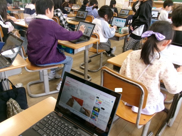 図画工作科の時間に、子供たちが楽しみにしていた「紙飛行機づくり」を行いました。子供たちは、まずは、「よく飛ぶ飛行機」をクロムブックを駆使して探しました。そして、その説明通りに折っていったはずなのですが・・・・・。