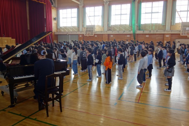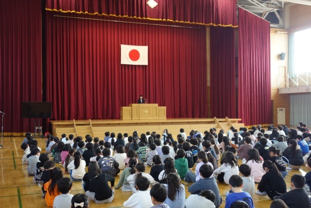 校長先生のお話を聞き、1年間の歩みを振り返った宮野っ子。