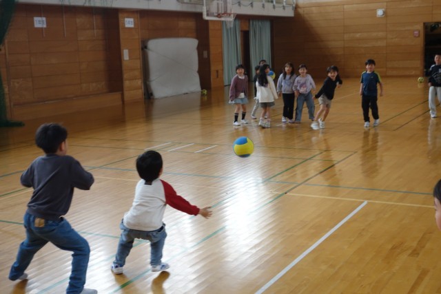 昼休み、仲良くドッジボール等で遊ぶ子供たち。元気いっぱい。