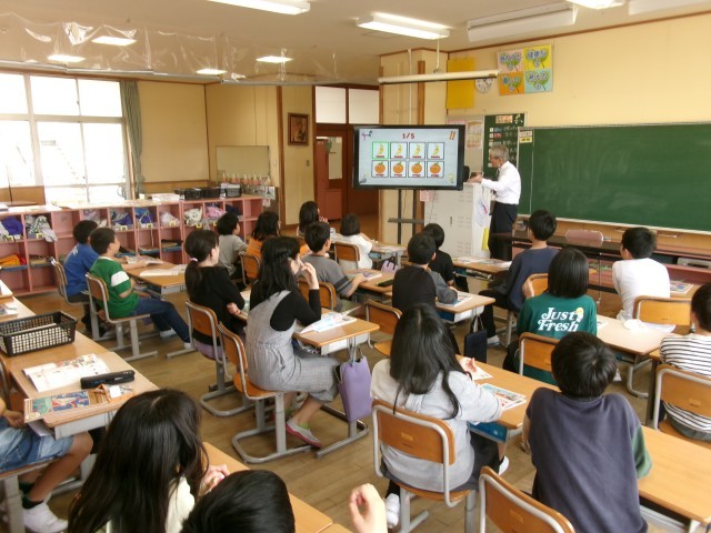 外国語科の活動では、リズムに乗りながら発音を行ったり、リスニングでは、登場人物の紹介を聞く活動等行いました。積極的に活動に取り組み、楽しそうに授業を受ける姿が見られました。