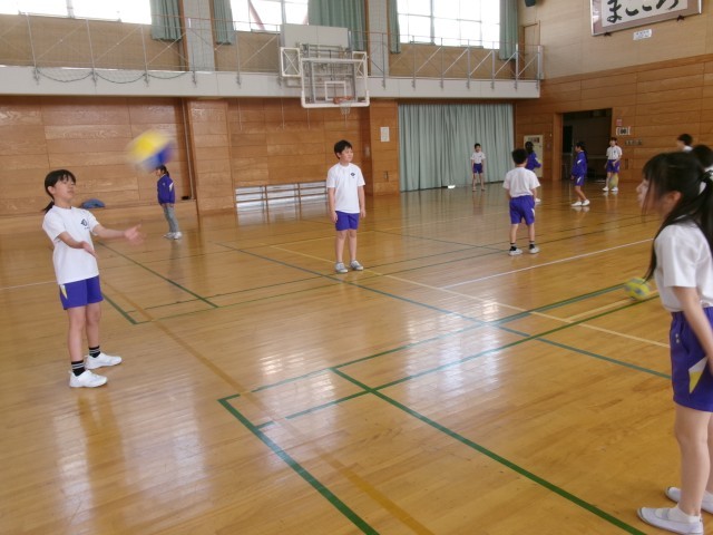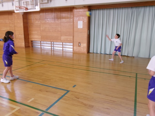 体育科では、体ほぐしの運動を行っています。この日は、ボールを落とさないようにキャッチボールを行いました。