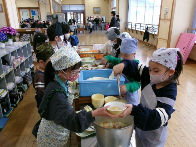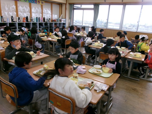 3年生になって、給食の量が増えたように思います。子供たちも大きくなってきたのか、もりもりとよく食べ、残食も少ないです。配膳の当番活動もとてもスムーズです。