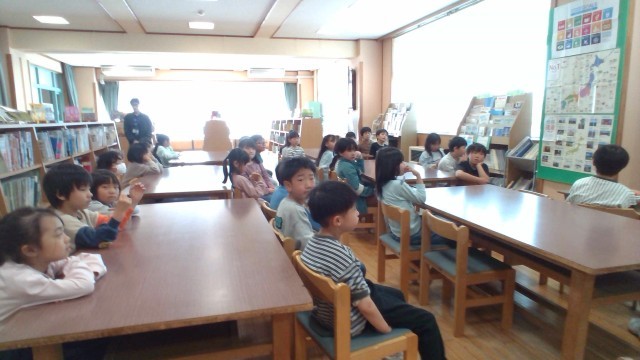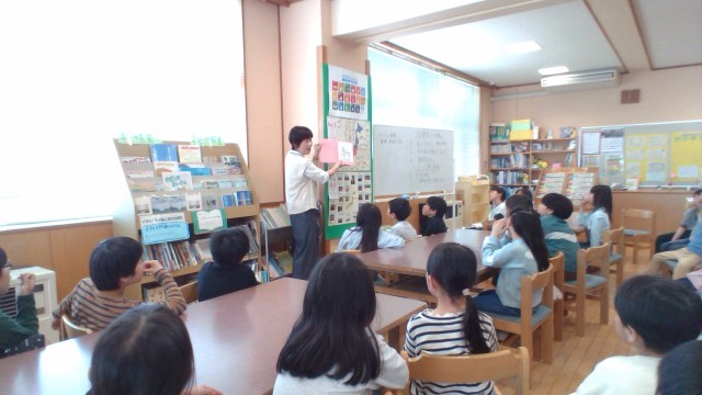 子供たちは真剣に司書の先生のお話を聞いています。