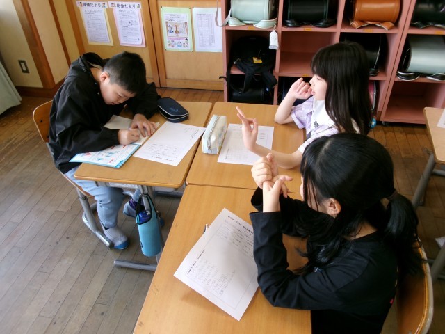 今日の国語科では「きいて・きいて・きいてみよう」の単元をやりました。インタビューを3役に分かれて行い、それぞれの役割で楽しんで行うことができました。
