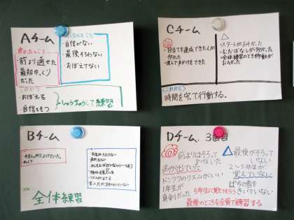 黒板に、昨日のたいこの振り返りが掲示してありました。