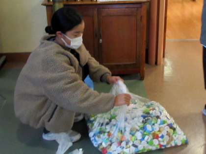 今朝はペットボトルキャップの回収をしています。