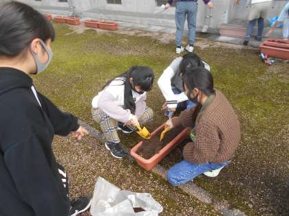 休み時間を利用して、チューリップの球根を植えました。ボランティアで集まってくれた子供たちが、愛情をこめて球根を植えました。