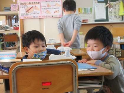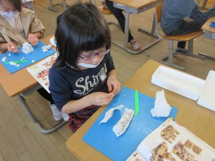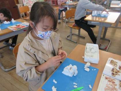 粘土で楽しかったことや頑張ったことを表しました。九九の練習、家族との温泉旅行、虫取り、、、いろいろな思い出で溢れていました。友達の作品もじっくり見ていました。