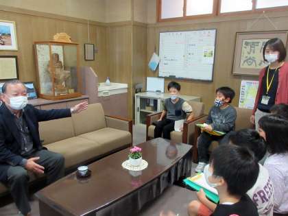 総合的な学習の時間に、宮野小学校のことを調べている3年生。