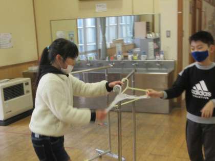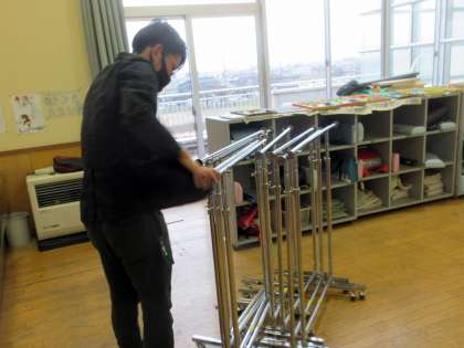 さっそく、家からもってきたハンガーをそこにかけている子供がいました。