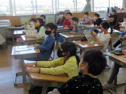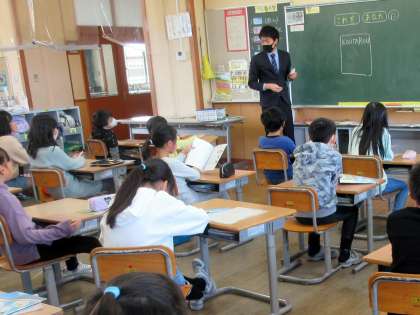外国語活動。 専科の先生が、ローマ字で 自分の名前を黒板に