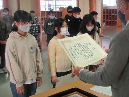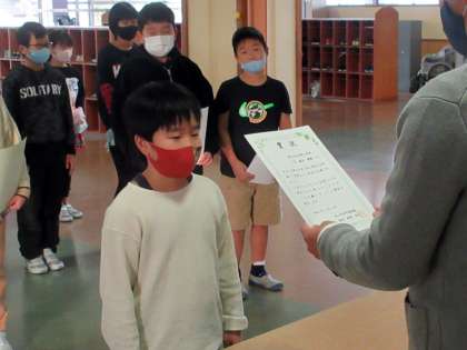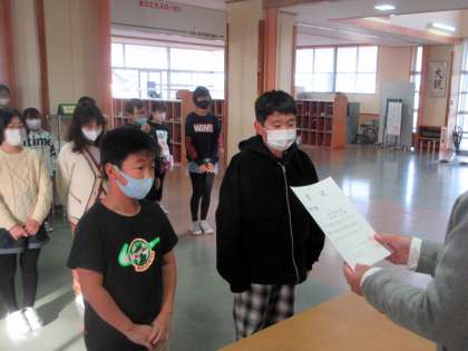 家庭学習チャレンジ週間の表彰式に続いて授賞伝達式を行いました。