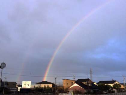 子供たちの登校前に、きれいな虹が見えました。