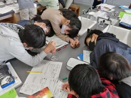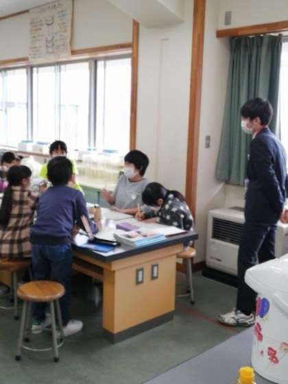 理科「空気の体積と温度」の学習の実験を、学年合同で行いました。子供たちは、実験のねらいや手順を確かめながら、協力したり役割分担したりして実験を行いました。今日は、観察実験アシスタントの大学生さんにも、子供たちの実験の準備や後片付け、実験の様子を見守ってもらいました。実験の結果に、マスクの奥で子供たちの歓声が上がっていました。
