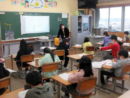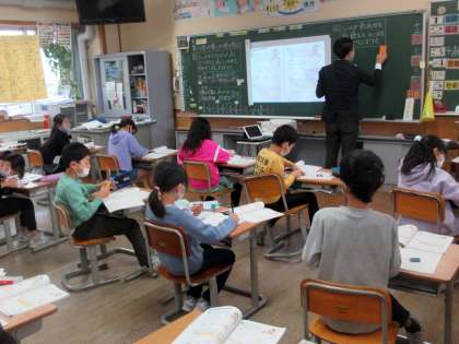 どの教科でも、授業で学ぶことを黒板に書いてから学習がはじまります。