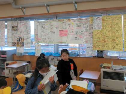 3年生の教室の掲示物は、子供たちが全員で達成した数々の記録。