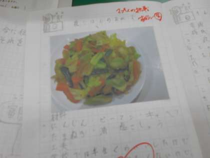 自主学習ノートを見ていると、先日の調理実習で造った「いろどり野菜炒め」を早速家でも実践したという報告がありました。学んだことが生活に生かせると学びがいがありますね。