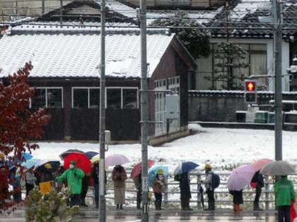 雪の日でも見守りをしていただいている地域の方々。