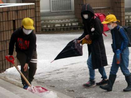 そして登校した後、玄関の除雪をしてくれている宮野っ子。