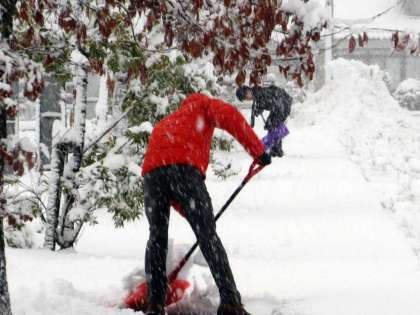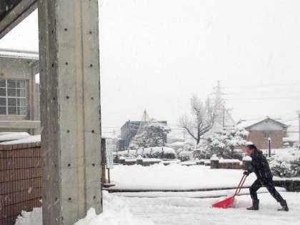 教職員が除雪中。