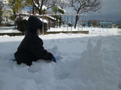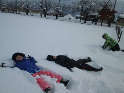 1回目より雪の量が増え、大喜びの子供たち。雪の上で大の字になったり、雪の中に埋もれたりしました。