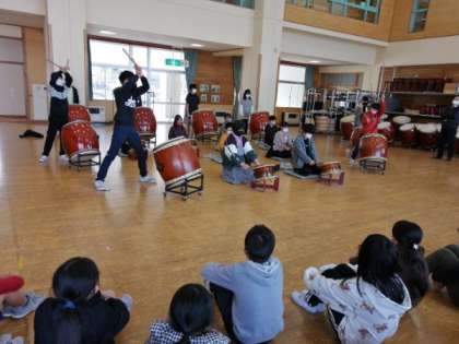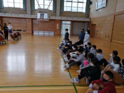 6年生から、「大河」「大空」の2曲を聴かせてもらいました。宮野小学校の伝統を受け継ぐための、初めての学習です。6年生の堂々とした迫力のある演奏に、言葉を失った4年生でした。