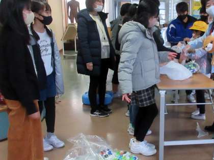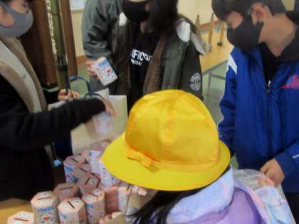 今朝は、ボランティア委員会が、募金箱の回収を行っています。