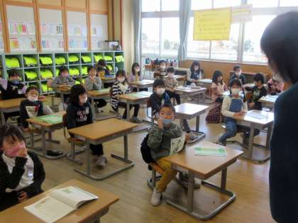 3学期から学校に戻られる先生が、来校。 子供たちに 一足はやくあいさつ。