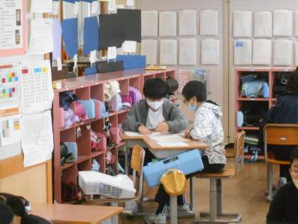 算数の復習をしている様子です。最初は二人でしたが、、、