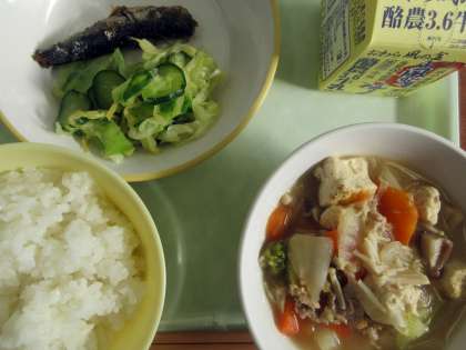 今日は、昆布といっしょに煮込んであります。昆布のおいしいだしがいわしにしみこみ、ごはんがすすむ味になっています。