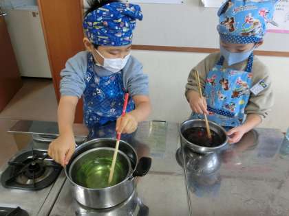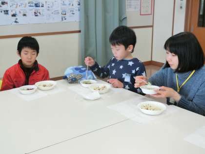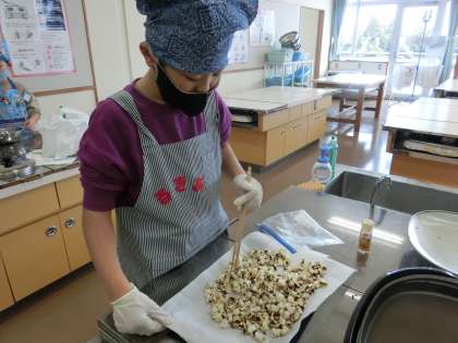 長かった2学期も最終日になりました。あおぞら級の子供たちは、最後のお楽しみとして、クッキングに挑戦しました。あおぞら畑で育てたポップコーンとゼリーを作りました。そして、やっぱり最後は、のぞみ級の友達を招待して一緒においしくいただきました。みんな、また3学期に元気に会おうね!