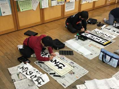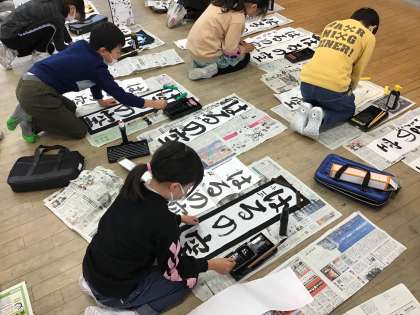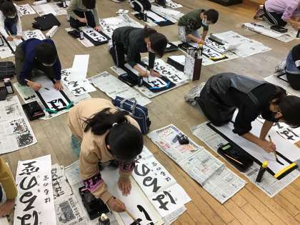 始業式の後に、書初大会が行われました。
