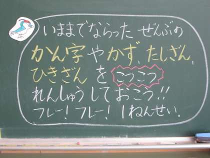 1ねんせいのみなさん、きょうも元気にすごしましょう。