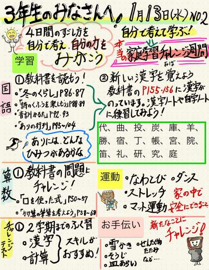 計画的に学習に取り組んだり、適度に運動したり、お手伝いをしたりして自分の力をみがくことができるといいですね。