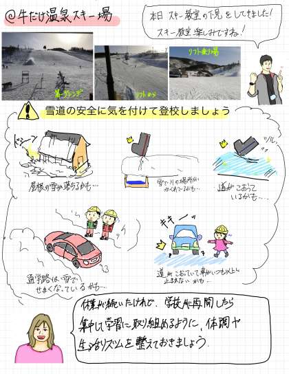 除雪が進み、通学路の除雪ができたので臨時休業が明けますね。月曜日皆さんに会えることを楽しみにしています。