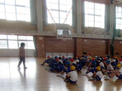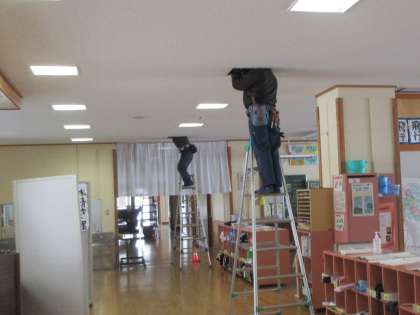 5年生が体育館にいる間に、校内LANの工事中。