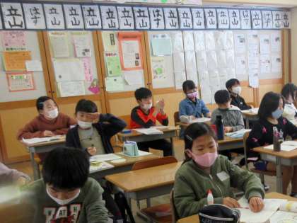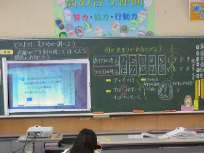 両面時計の表の裏の時刻を調べ、きまりを見付けます。