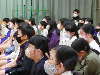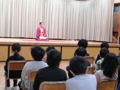 三遊亭良楽さんの落語を聴きました。子供たちは、身を乗り出して聴き入り、面白いところでは、マスクの奥ではありますが、声を上げて笑っていました。質問コーナーでは、「良楽さんは、なぜ落語家になったのですか?」という4年生の質問に、「自分の話を聞いて、人が笑ってくれることが嬉しいから」と答えてくださいました。たくさんの笑顔があふれた素敵な時間になりました。