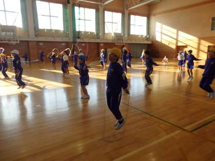 今日の体育は、体育館3周となわとびでウォーミングアップ!