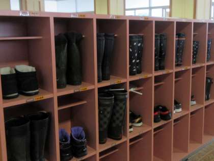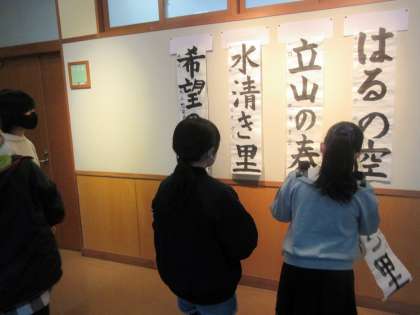 書初の代表の子供たちが、昨日練習した作品を貼り重ねています。