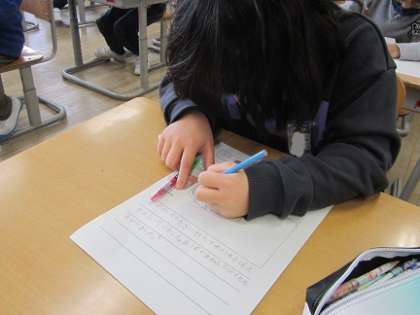 生活科「あしたへジャンプ」の学習では、自分のできるようになったことを考えました。鉛筆が正しくもてるようになったことや、逆上がりや二重跳びができるようになったこと、野菜を育てられるようになったこと。この2年間でできるようになったことがたくさんあることに気づいた子供たちです。