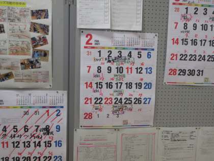 音楽を聴きながら、音楽の時間に学習する合奏曲候補を黒板に書いています。