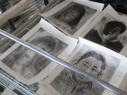 感想棚に ドライポイント作品。 自画像を 線で彫っています。
