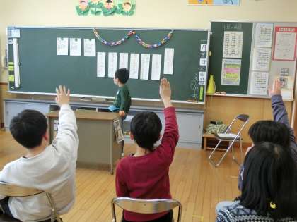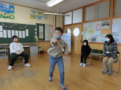 今日は、のぞみ・あおぞら級の1月生まれの友達の誕生日会をしました。クイズやフルーツバスケットなどのゲームをして、1月生まれさんに手作りのプレゼント(手紙や折り紙などです)をわたしました。